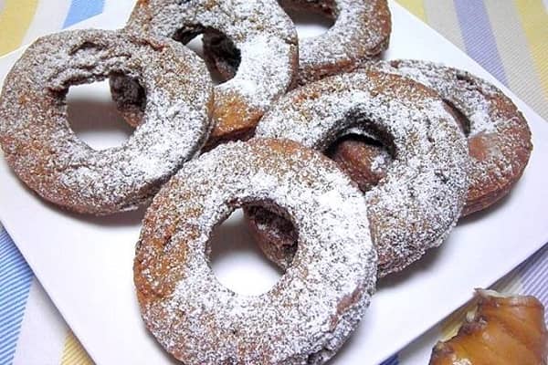 4.厚さを1cmにのばして型抜きして170℃で両面キツネ色に揚げ、粉砂糖をふる。