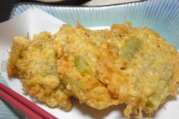 3.2に1を3cmに切ったもの、ちりめんじゃこを混ぜて油で揚げる。