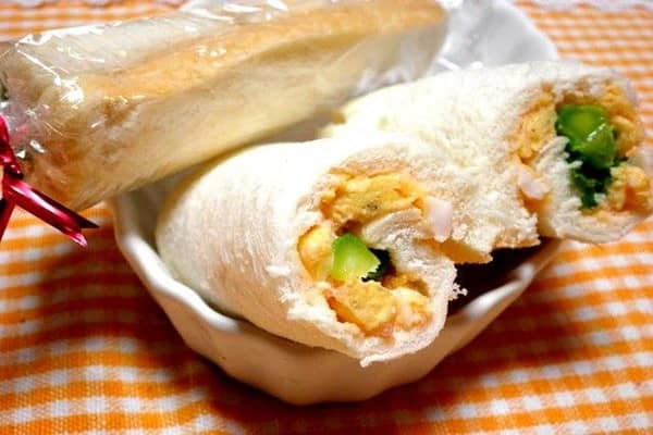 3.バターを柔らかくしパンに薄く塗り、1と2をのせて巻く。