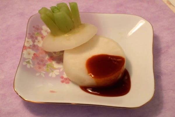 1.カブは皮をむき、3cmの輪切りにして面取りをする。