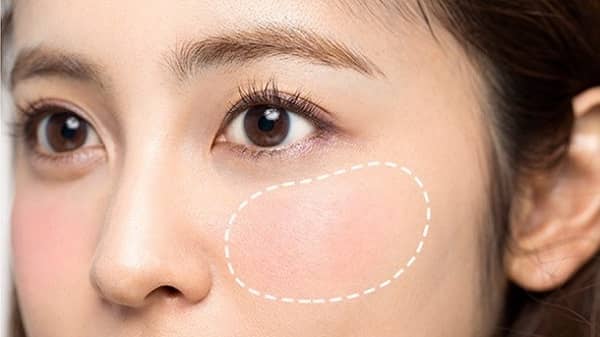2. チークはやわらかいピンク系のクリームチークを使用して、自然な血色を演出します。