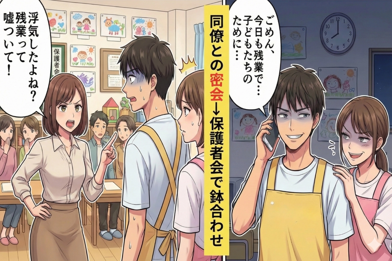 「子どもたちのために残業」と言っていた保育士の彼氏→実は同僚と“こっそり会っていた”と知り、保護者会で鉢合わせした話