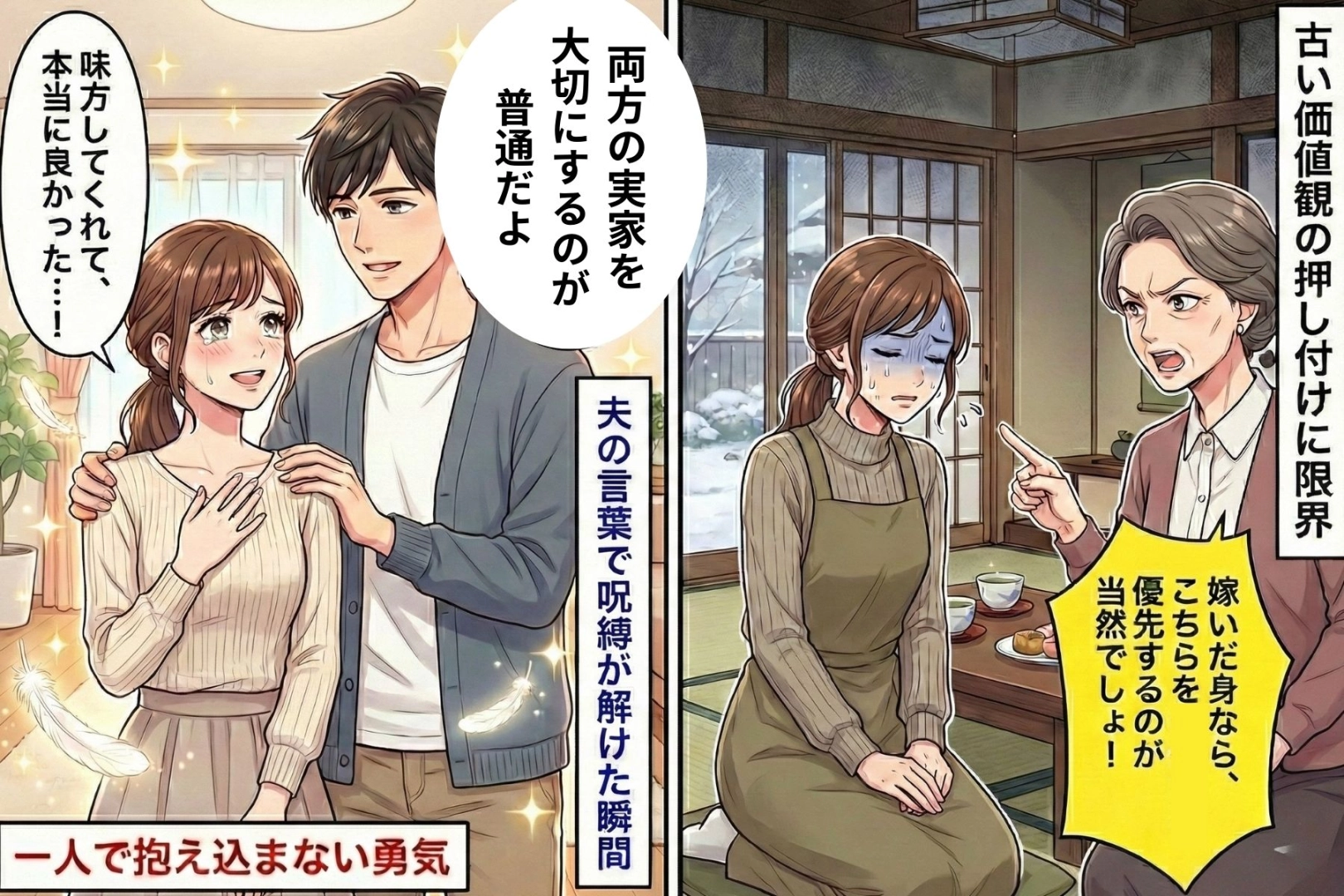 義母「嫁いだ身なら、こっちを優先するのが当たり前でしょ」実家より義実家を優先するよう迫られて…戸惑う私に、夫が言い返したある一言