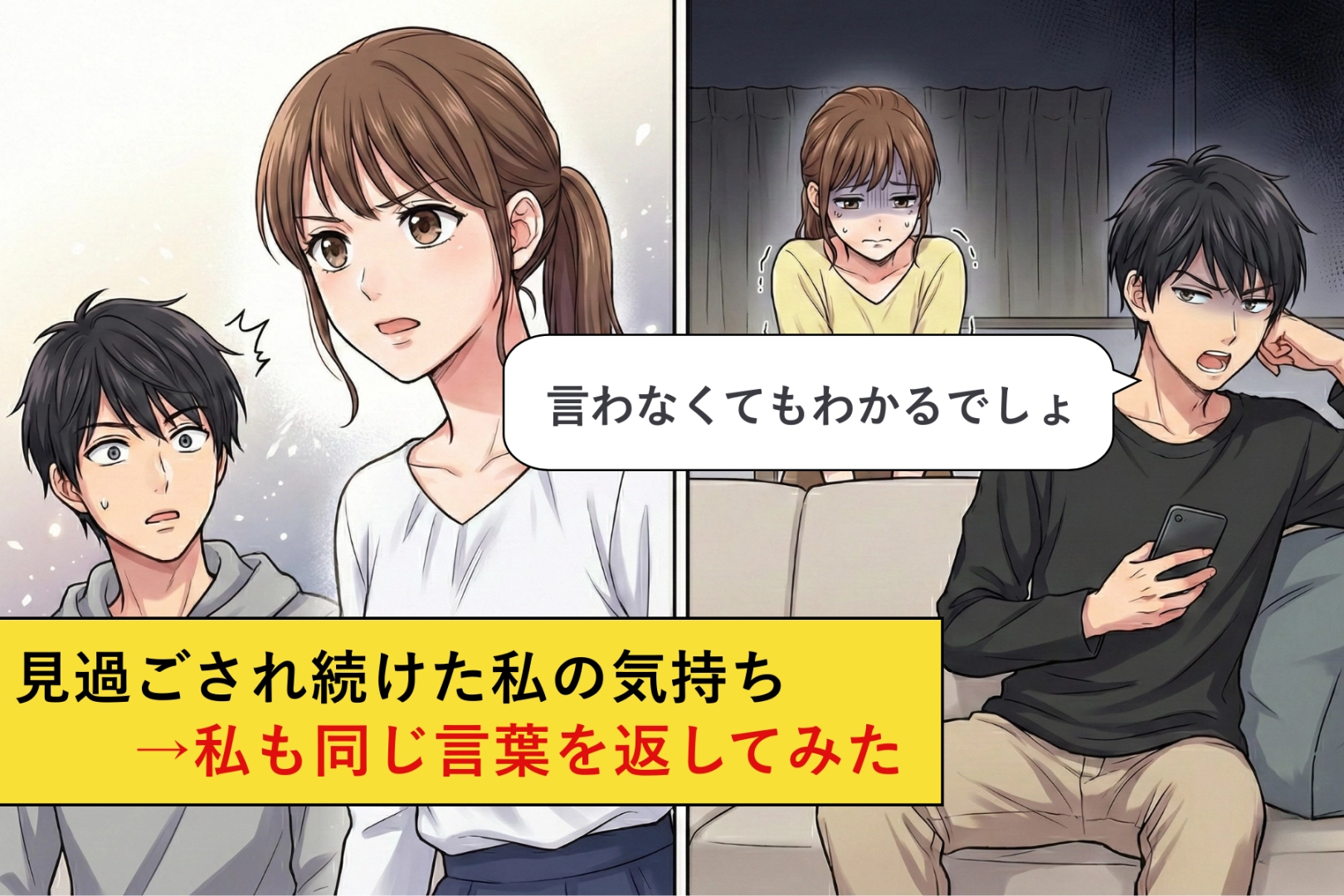 「言わなくてもわかるでしょ」と察することを要求する彼氏→私の気持ちは一度も察さないので、同じセリフを言ってみた