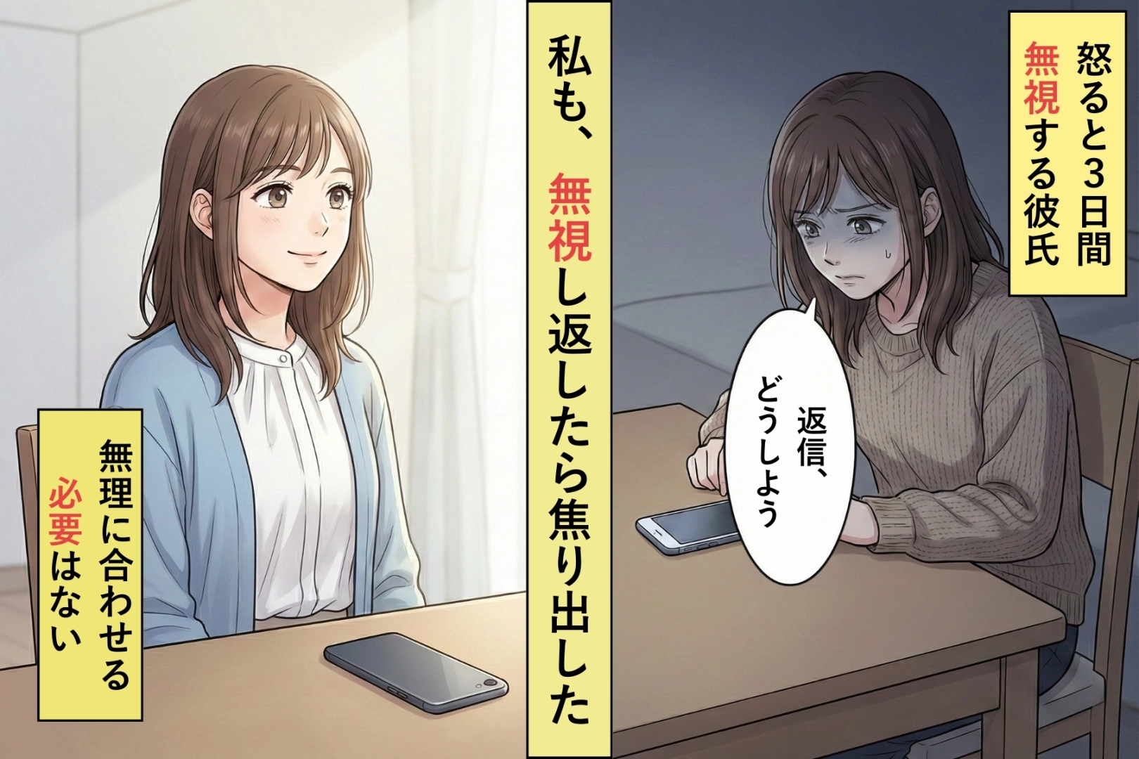 怒ると3日間無視する彼氏→「自分で考えて」しか言わないので、私も無視し返したら焦り出した