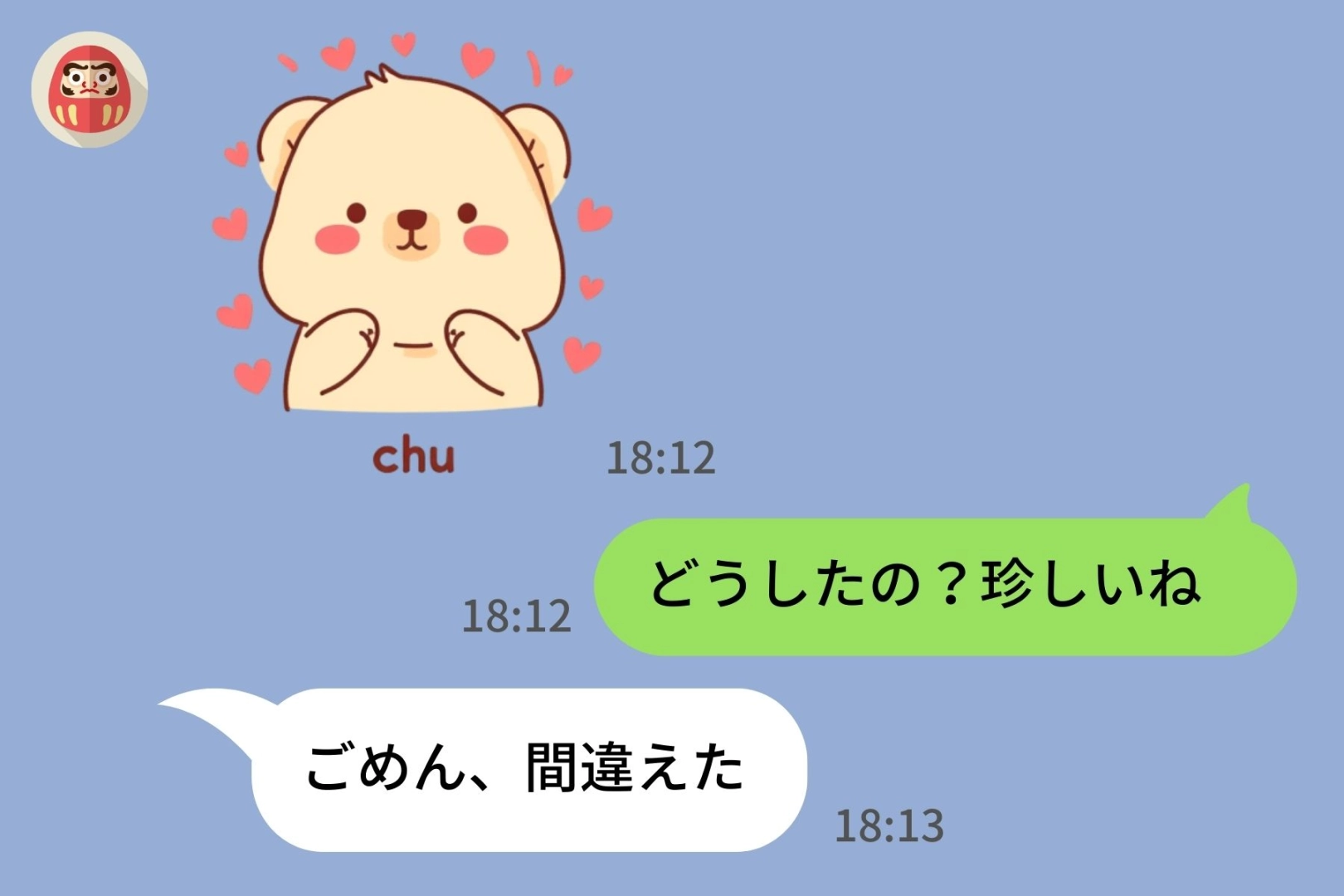 いつも塩対応の彼から突然「ちゅっ♡」と甘いスタンプが→「間違えた」と慌てる彼に違和感