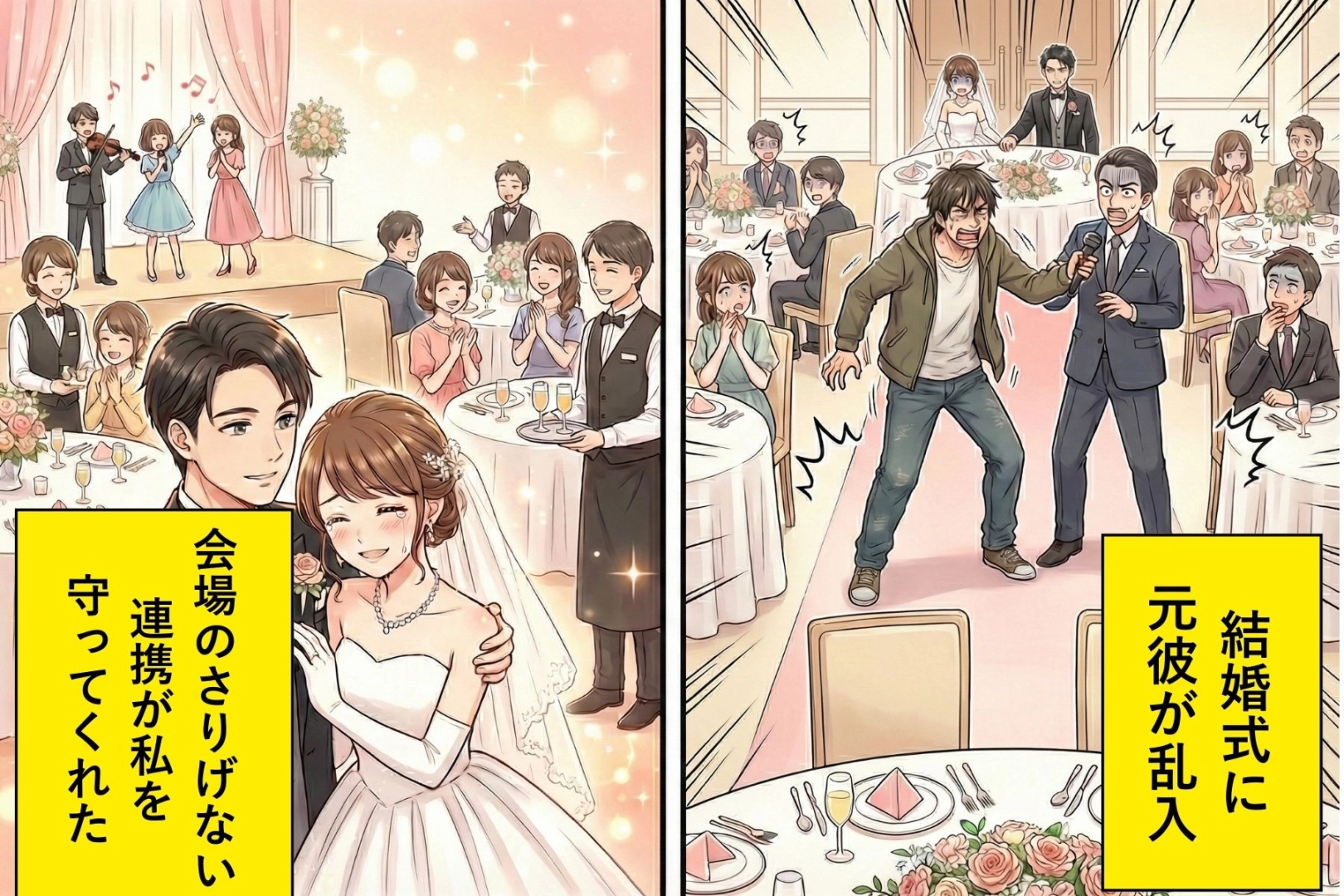 結婚式の途中で突然元彼が乱入「まだお前のことが――」→会場のさりげない連携が私を守ってくれて…