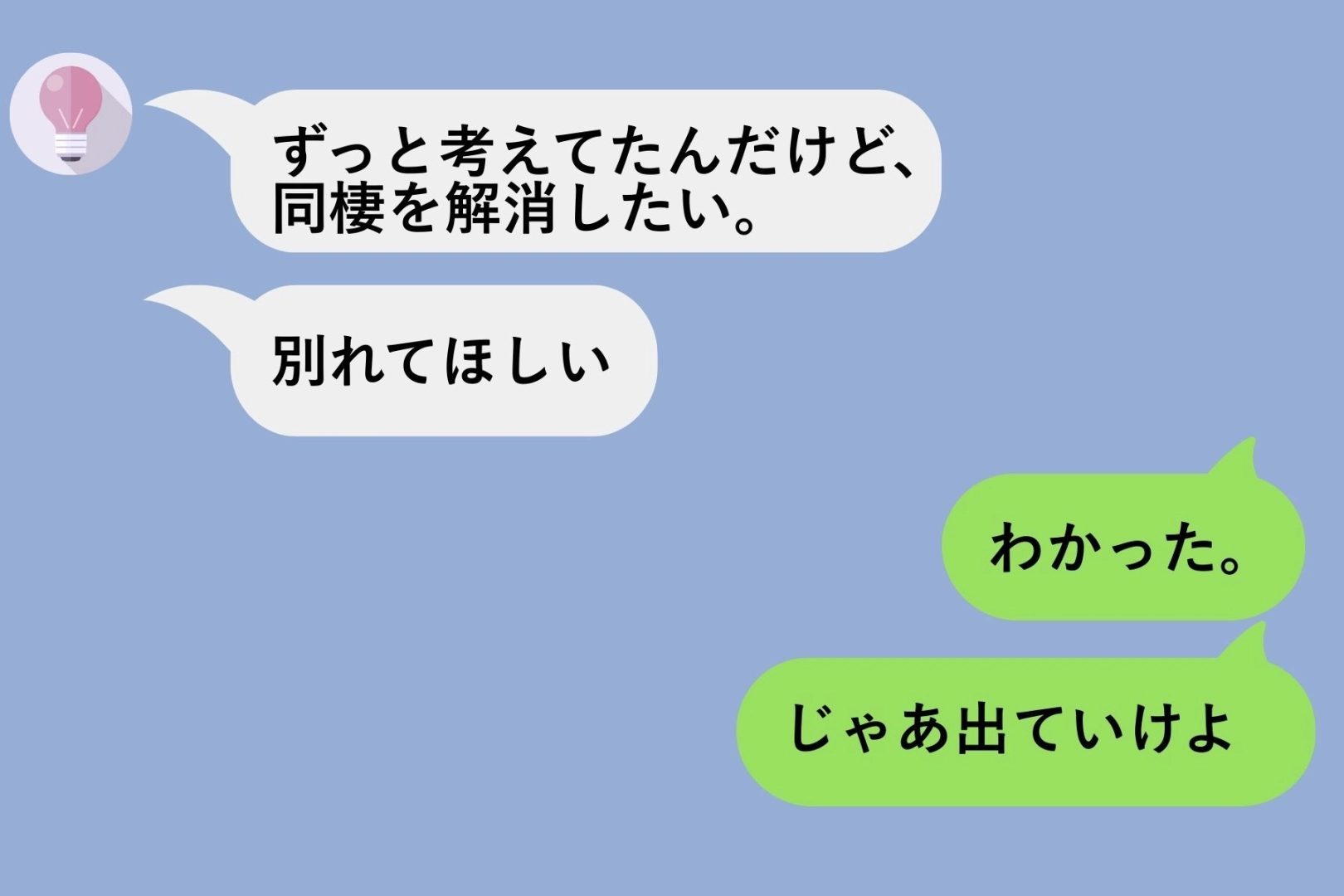 「ずっと考えてたんだけど、同棲を解消したい。別れてほしい」