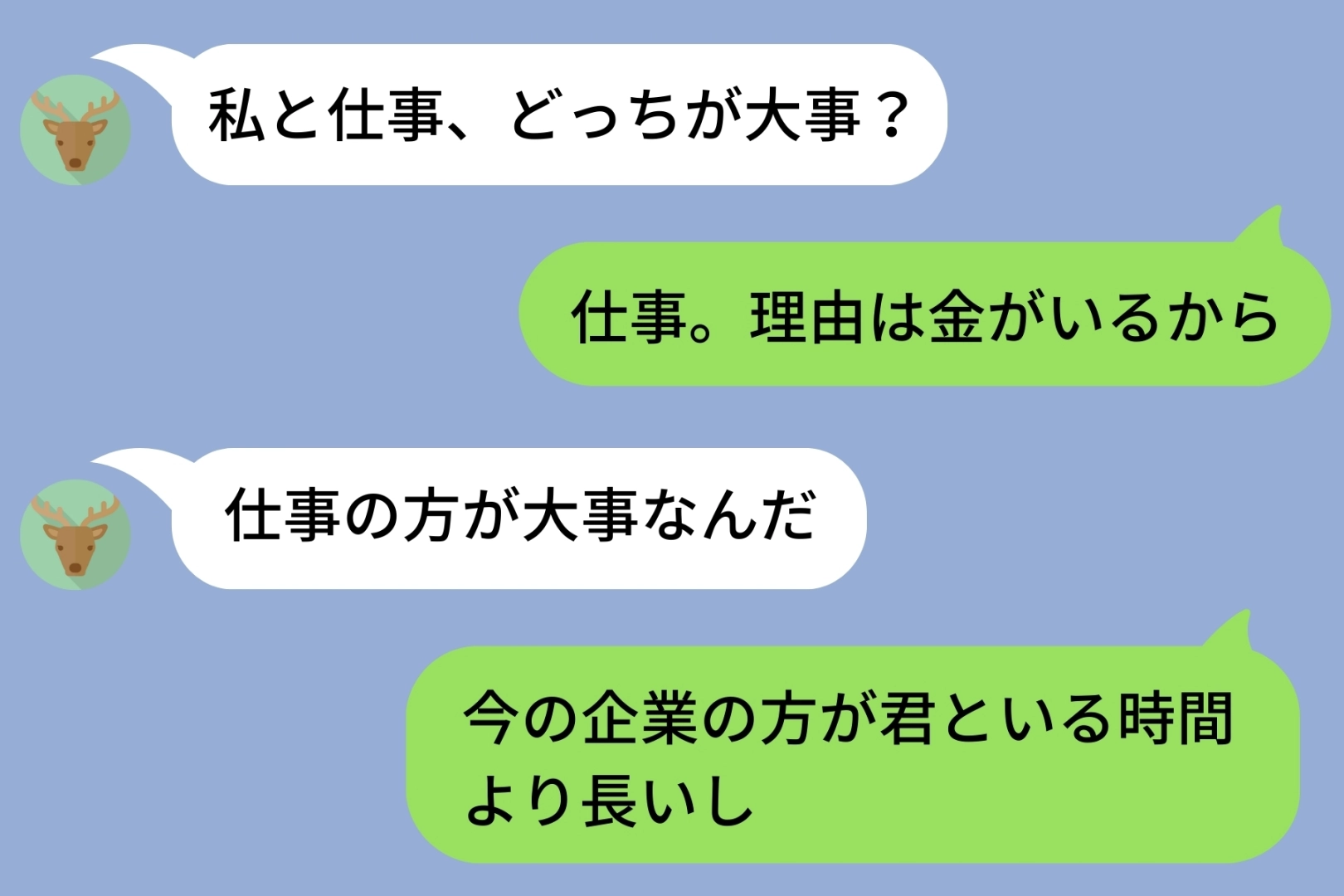 彼女に「私と仕事どっちが大事?」と聞かれ、冗談で答えたら→思わぬ展開になってしまった話
