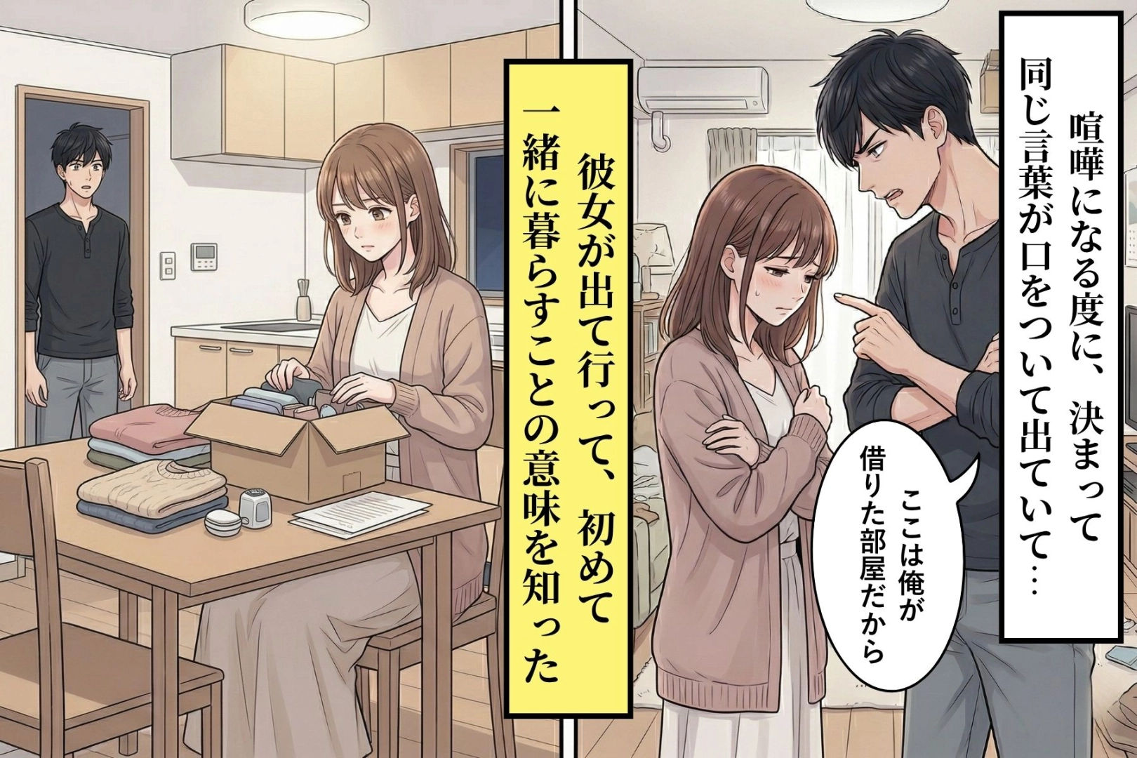 喧嘩になる度に「俺の部屋だから」と言い続けた俺。彼女が荷物をまとめた日、初めて気がついたこと。