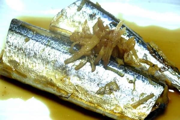 1. 秋刀魚は頭と内臓を出して半分に切り、生姜は千切りにする。